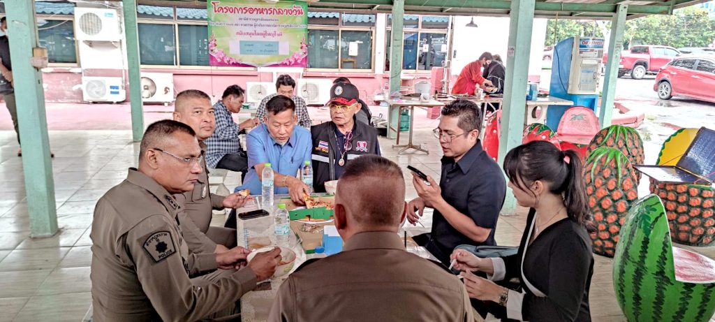 นายชุมพร หงษ์ไทร และ คณะกรรมการตรวจสอบและติดตามการบริหารงานตำรวจ (กต.ตร.)สภ.เมืองนครนายก ที่ช่วยสนับสนุน อาหารกลางวันวันให้แก่ข้าราชการตำรวจ สภ.เมืองนครนายก ตาม “โครงการหารกลาง สถานีตำรวจภูธรเมืองนครนายก”