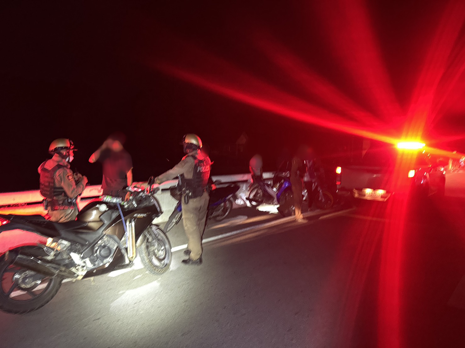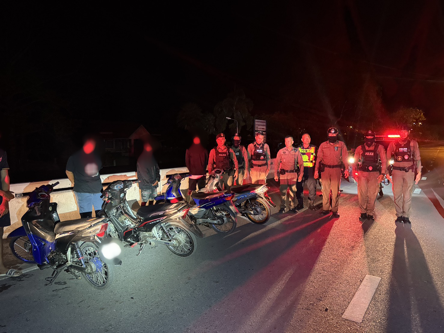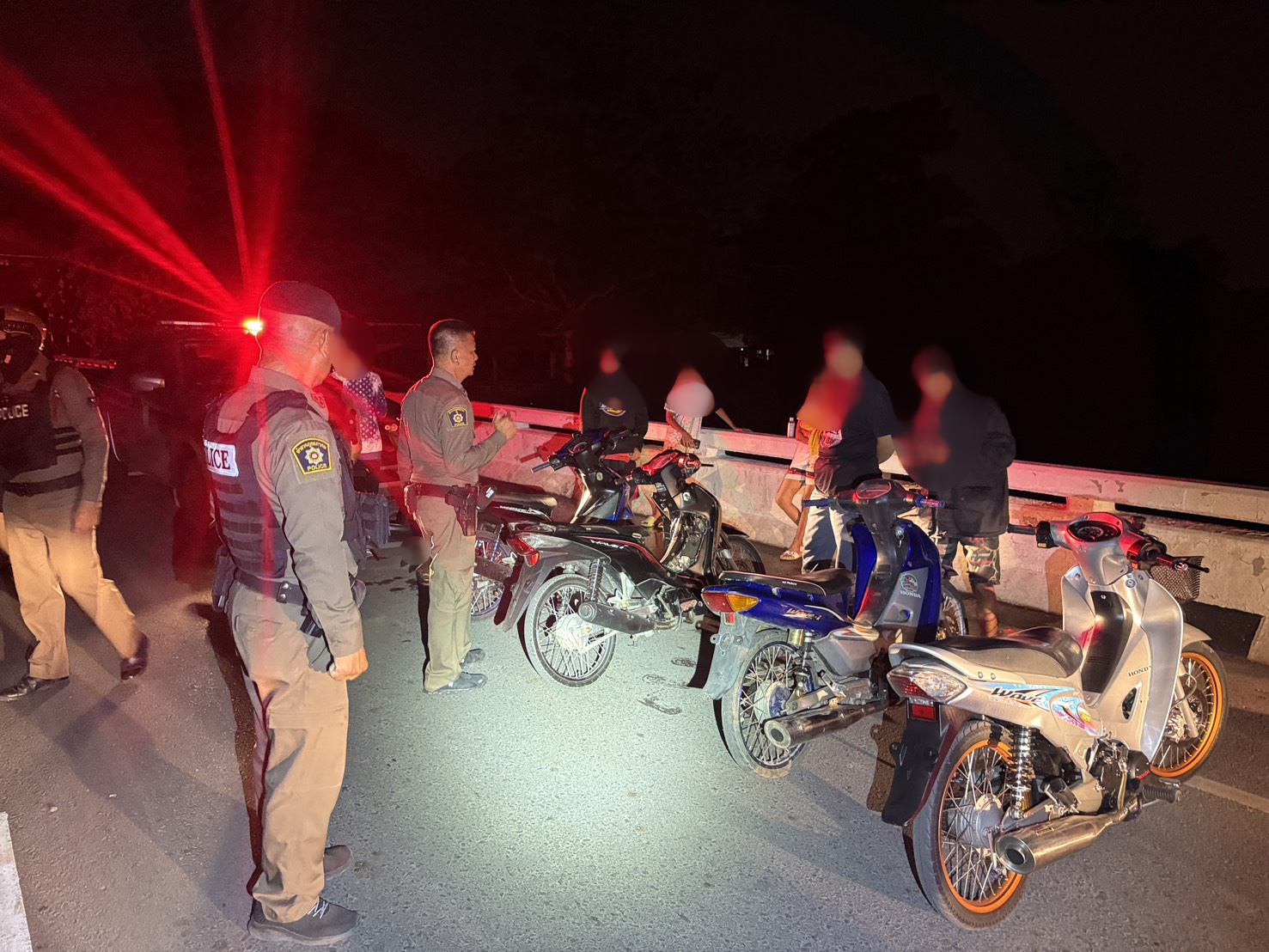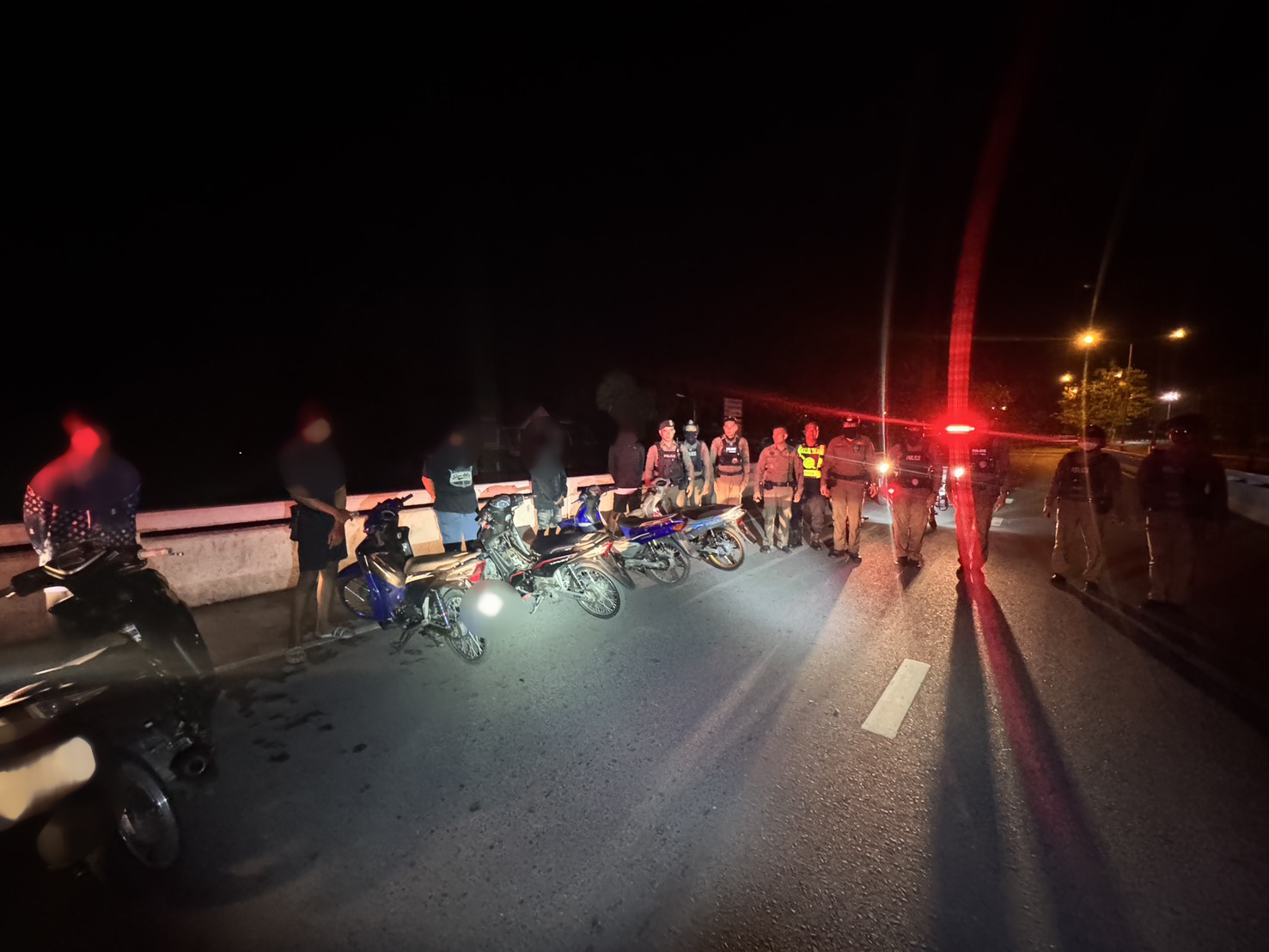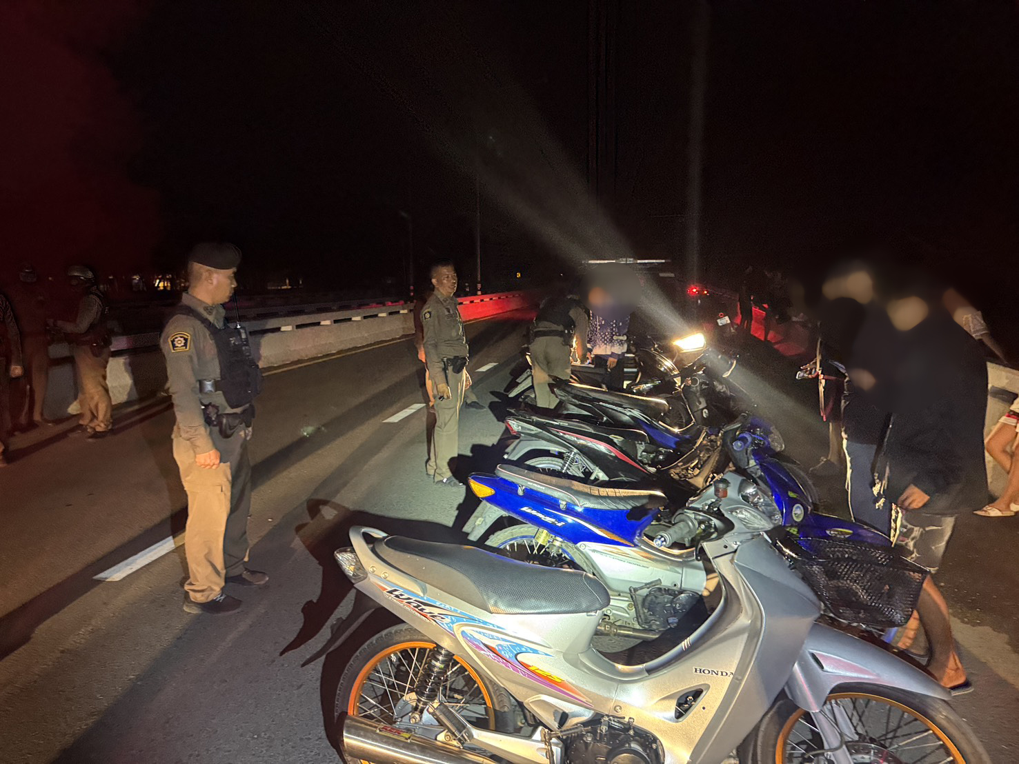 เจ้าหน้าที่ได้เรียกและตรวจค้นรถจักรยานยนต์กลุ่มหนึ่ง และยึดรถจำนวน 7 คัน บริเวณสะพานท้ายเขื่อนขุนด่านปราการชล เพื่อตรวจสอบเพิ่มเติม ตามนโยบายเข้มงวดของ สภ.เมืองนครนายก ที่มุ่งป้องปรามพฤติกรรมเสี่ยงอันตรายบนท้องถนน เพื่อความปลอดภัยของประชาชน