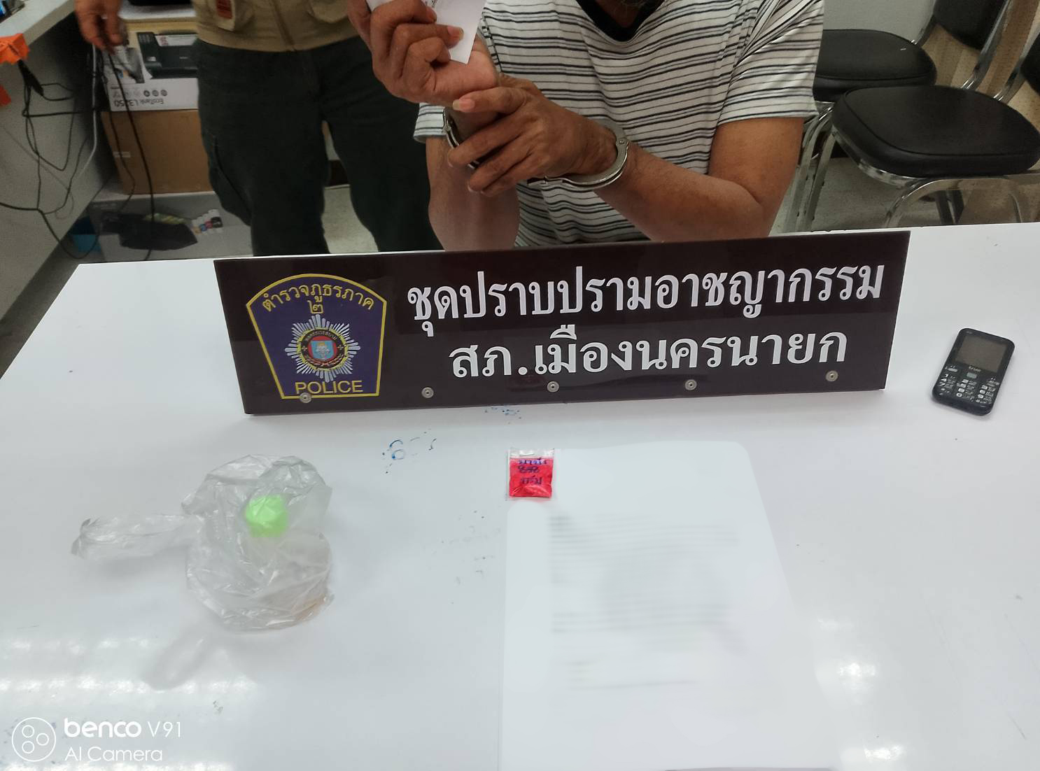 เมื่อวันที่ 3 ตุลาคม 2567 เวลา 14.00 น. เจ้าหน้าที่ตำรวจ สภ.เมืองนครนายก นำโดย พ.ต.อ.สง่า ทางธรรม ผกก.สภ.เมืองนครนายก และ พ.ต.ท.กิตตินันท์ ศรีม่วง รอง ผกก.ป. สภ.เมืองนครนายก พร้อมด้วย พ.ต.ต.พัฒนา ปัญญาสาร สวป.ฯ และชุดปราบปรามอาชญากรรม ได้รับข้อมูลจากสายข่าวว่ามีการมั่วสุมเสพยาเสพติด จึงดำเนินการปิดล้อมตรวจค้นบ้านเป้าหมายในพื้นที่ตำบลนครนายก อำเภอเมือง จังหวัดนครนายก เพื่อจับกุมผู้ต้องหาที่มีส่วนเกี่ยวข้องกับการค้ายาเสพติด