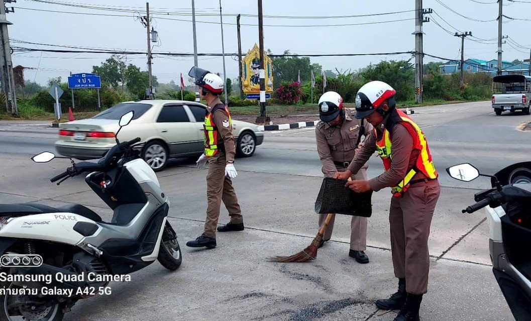 วันที่ (8 พ.ค.67) เวลาประมาณ 08.00 น. พ.ต.ท.จรดล สร้างเอี่ยม, ร.ต.อ.นิธิกร ฉิมพาลี และ ส.ต.อ.ไชยพงศ์ อรรคมะเสาร์ ออกตรวจสภาพการจราจรในพื้นที่ พบเศษหินตกหล่นอยู่บนพื้นผิวถนน เกรงว่าจะเกิดอันตรายต่อประชาชนผู้ที่ใช้รถสัญจรไปมา จึงได้ทำการเก็บกวาดและทำความสะอาด