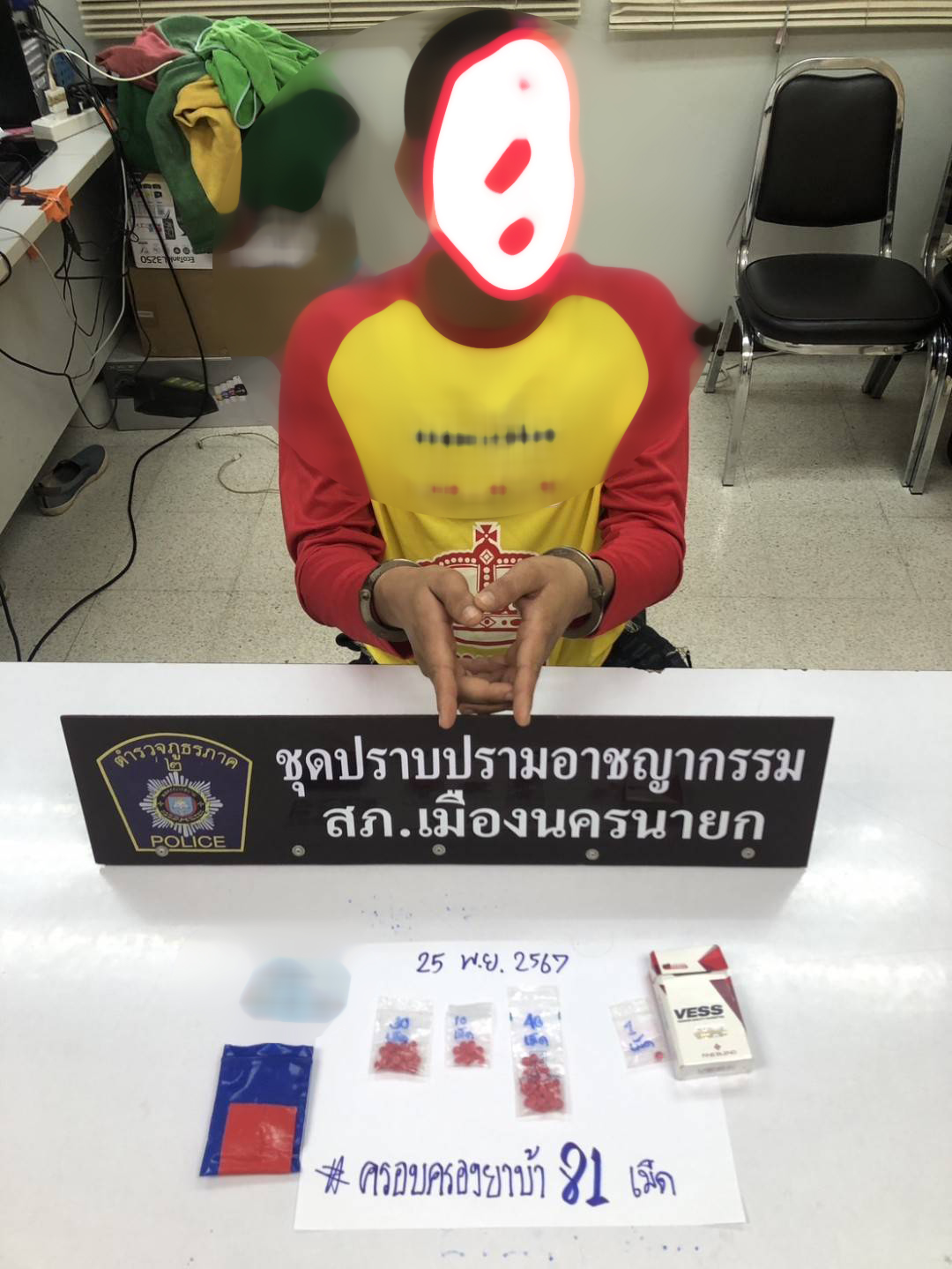 - ของกลาง: ยาบ้าจำนวน 81 เม็ด