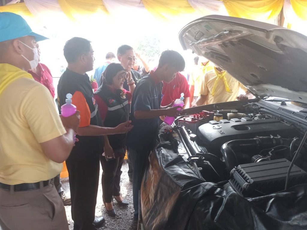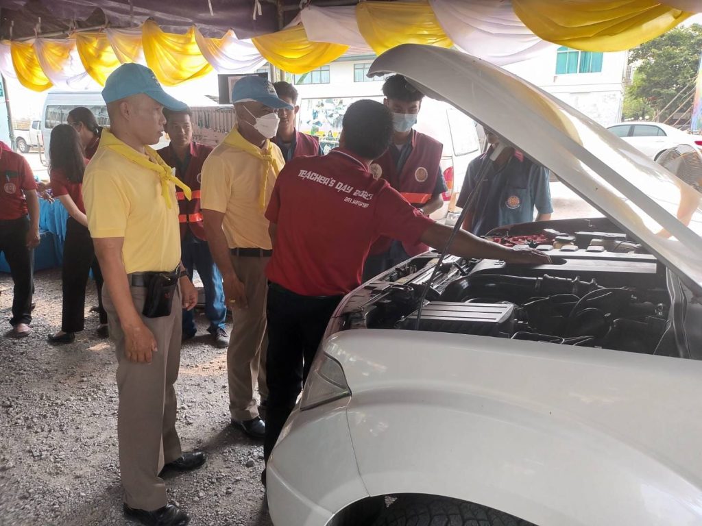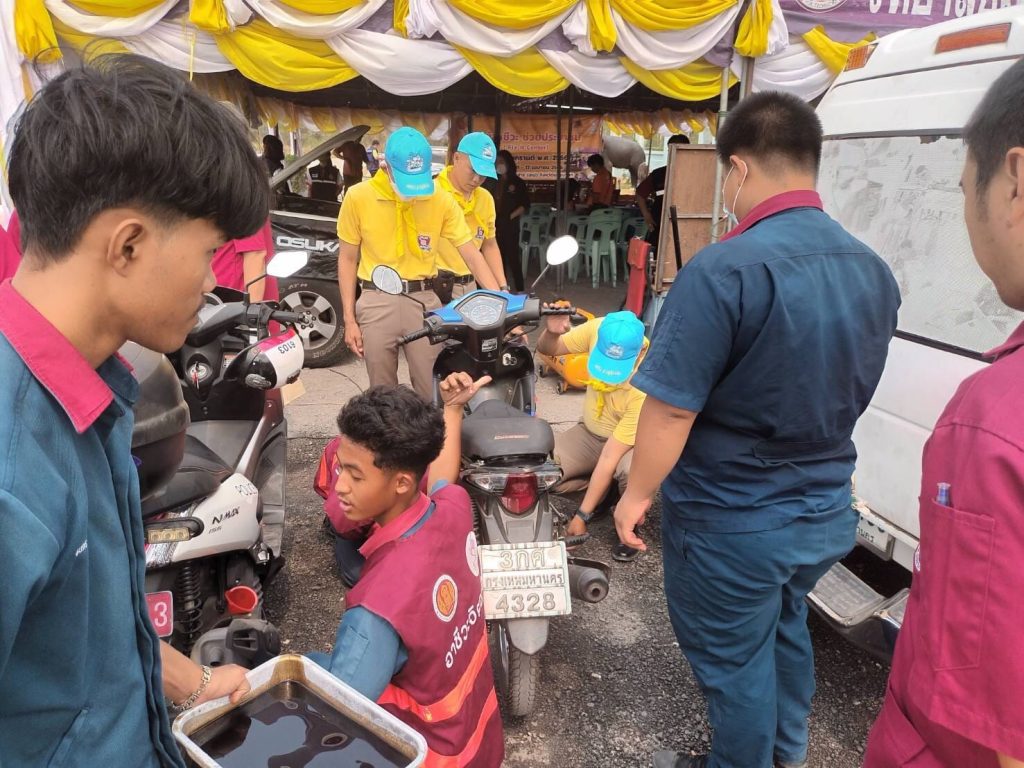 พ.ต.อ.สง่า ทางธรรม ผกก.สภ.เมืองนครนายก มอบหมายให้ พ.ต.ท.บรรจง ทัพภูมี สว.จรฯ พร้อมตำรวจจิตอาสา ร.ต.อ.ประทวน เพ็ชรตะคุ รอง สว.จร.ฯ ร่วมพิธีเปิดศูนย์อาชีวะ ช่วยประชาชน (Fix it Center) เทศกาลสงกรานต์ 2566 ณ สถานีขนส่งผู้โดยสาร (ใหม่) จังหวัดนครนายก ครั้งนี้มีผู้เข้าร่วมกิจกรรม ข้าราชการตำรวจจิตอาสา สภ.เมืองฯ จำนวน 5 นาย พร้อมมีคณะผู้บริหาร ครู อาจารย์ นักเรียน นักศึกษา วิทยาลัยเทคนิคนครนายก ข้าราชการขนส่งจังหวัดฯ ผู้นำชุมชน ภาคประชาชนและภาคเอกชน รวม 100 คน ซึ่งมีวัตถุประสงค์ เพื่อตรวจเช็คสภาพรถยนต์ รถจักรยานยนต์ ซ่อมบำรุง และให้บริการด้านอื่นๆ แก่ประชาชน ผู้ใช้รถใช้ถนนช่วงสงกรานต์ เป็นการป้องกันลดอุบัติเหตุ จากความบกพร่องของตัวรถ ในการลดการสูญเสียชีวิตและทรัพย์สินของประชาชนในการเดินทางในเทศกาลสงกรานต์ พ.ศ.2566