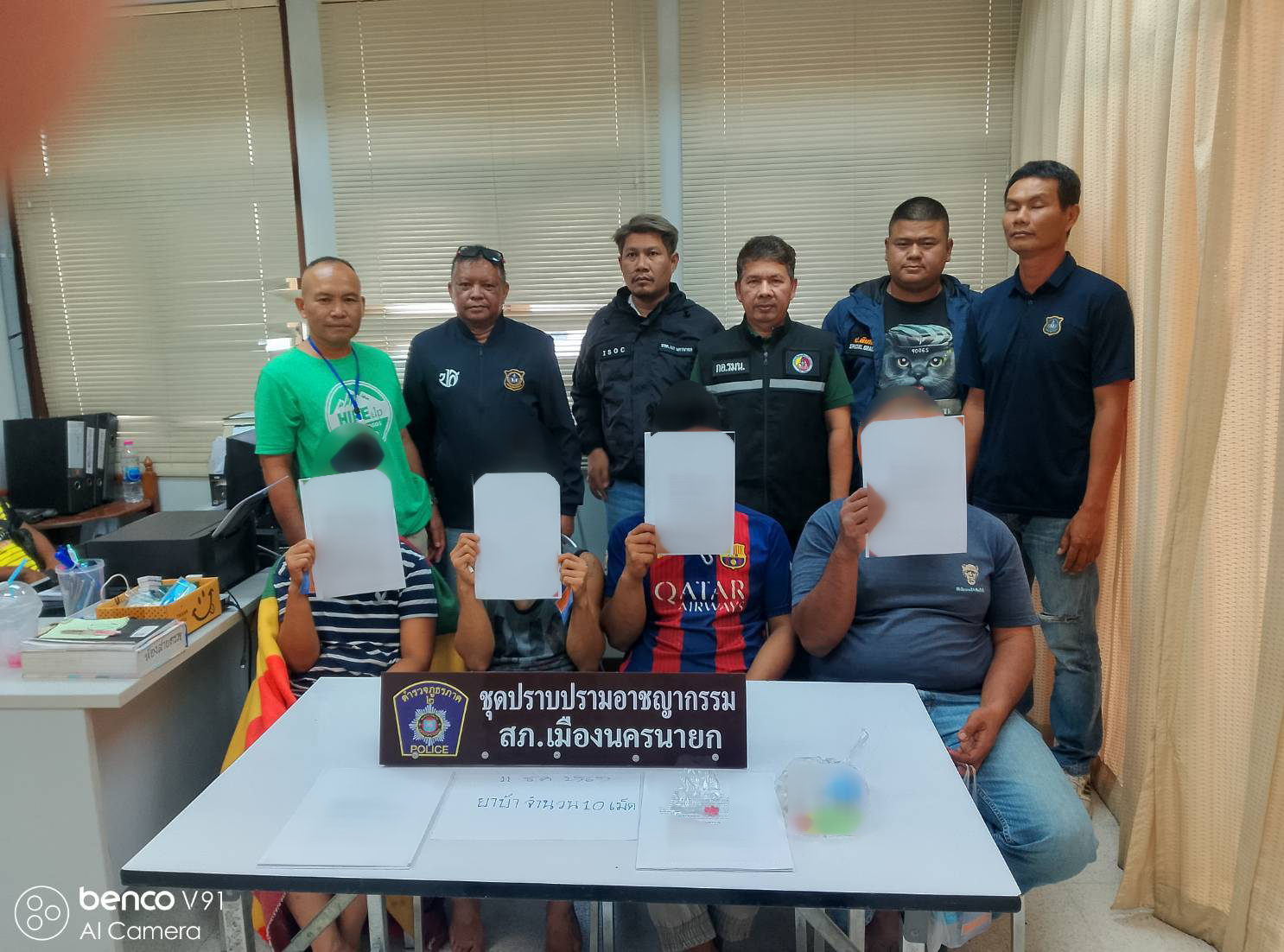 สภ.เมืองนครนายก ร่วมกับ กอ.รมน.จังหวัด ปิดล้อมจับกุมผู้ต้องหาเกี่ยวข้องกับยาเสพติด