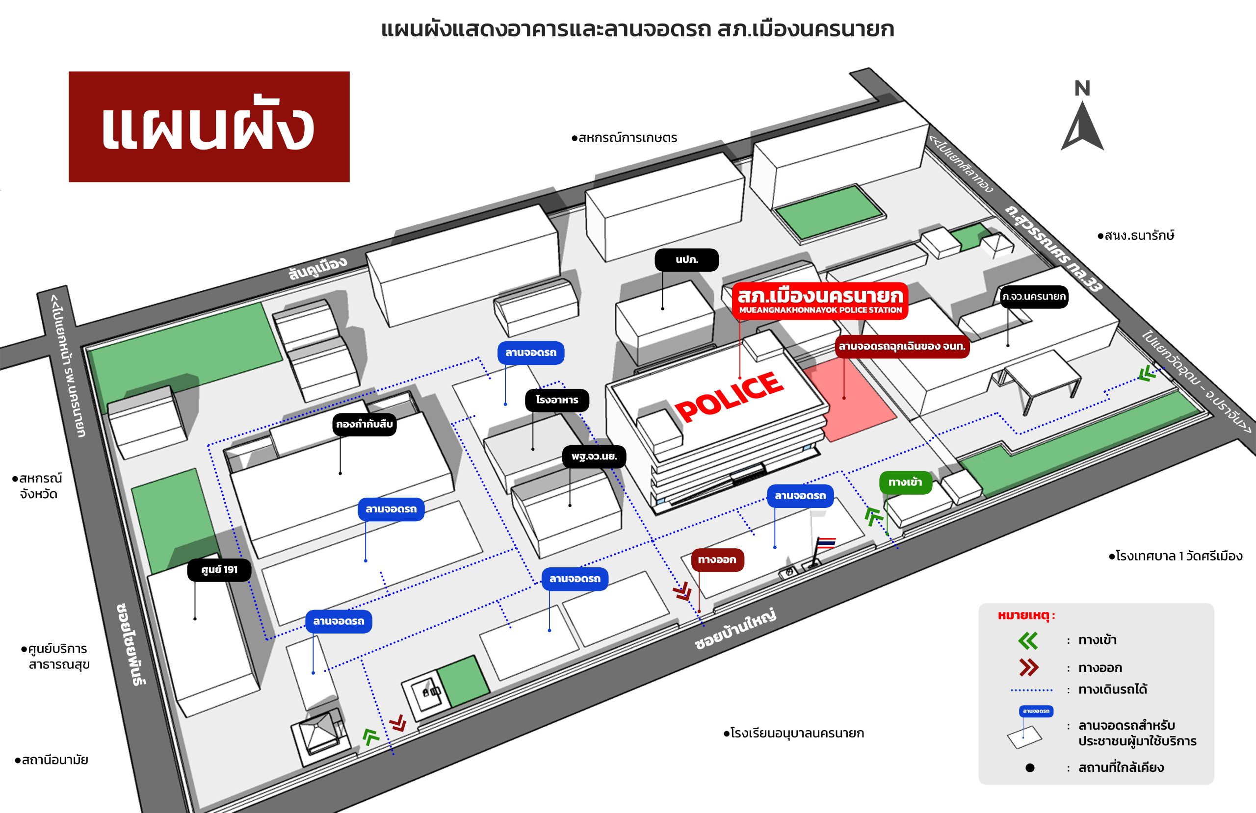 - กรณีตรวจสอบประวัติประกอบการทำ ใบขับขี่ ให้ไปที่อาคารพิสูจน์หลักฐานจังหวัดนครนายก (พฐ.จว.นย.) คลิกเพื่อดูแผนผังที่ตั้ง