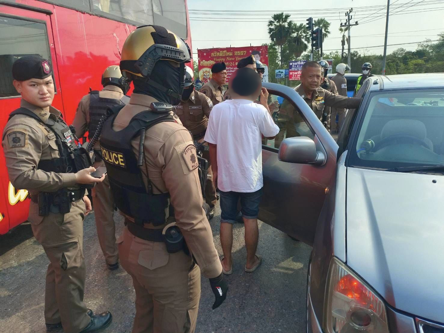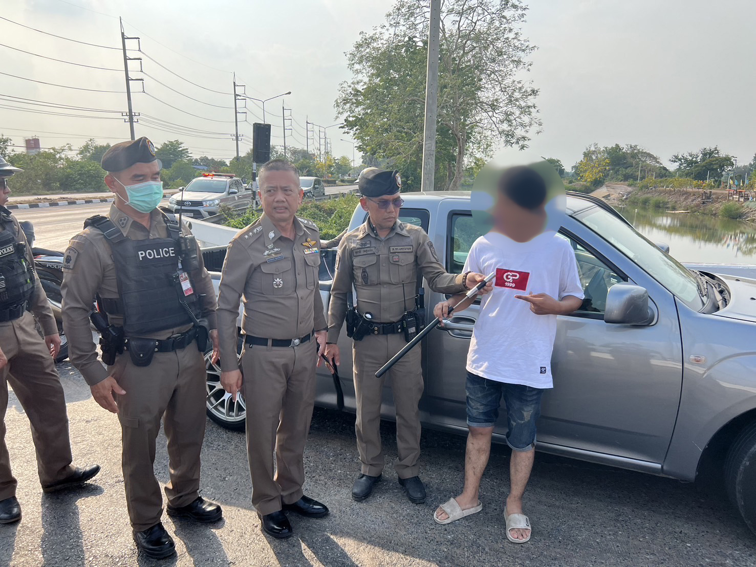 สกัดจับผู้ก่อเหตุข่มขู่โดยใช้อาวุธ แล้วใช้รถยนต์หลบหนี