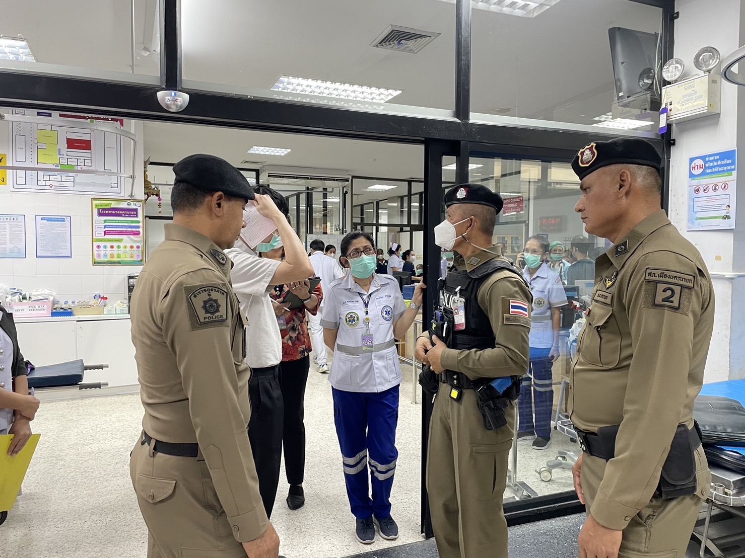 วันที่ 21 ธ.ค.2566 เวลา 14.00 น. พ.ต.ท.กิตตินันท์ ศรีม่วง รอง ผกก.ป สภ.เมืองนครนายก พ.ต.ต.วีรศักดิ์ บาลโสง สวป.ฯ พร้อมกำลังสายตรวจ เข้าร่วมซ้อมแผนการป้องกันและการจัดการความรุนแรง ณ โรงพยาบาลนครนายก เพื่อเตรียมความพร้อมสำหรับการป้องกัน และ ระงับเหตุการณ์ที่จะเกิดขึ้นมีการฝึกซ้อมแผนเพื่อให้เกิดความรู้ ความชำนาญ และการป้องกัน เมื่อเกิดเหตุการณ์ในโรงพยาบาลนครนายก